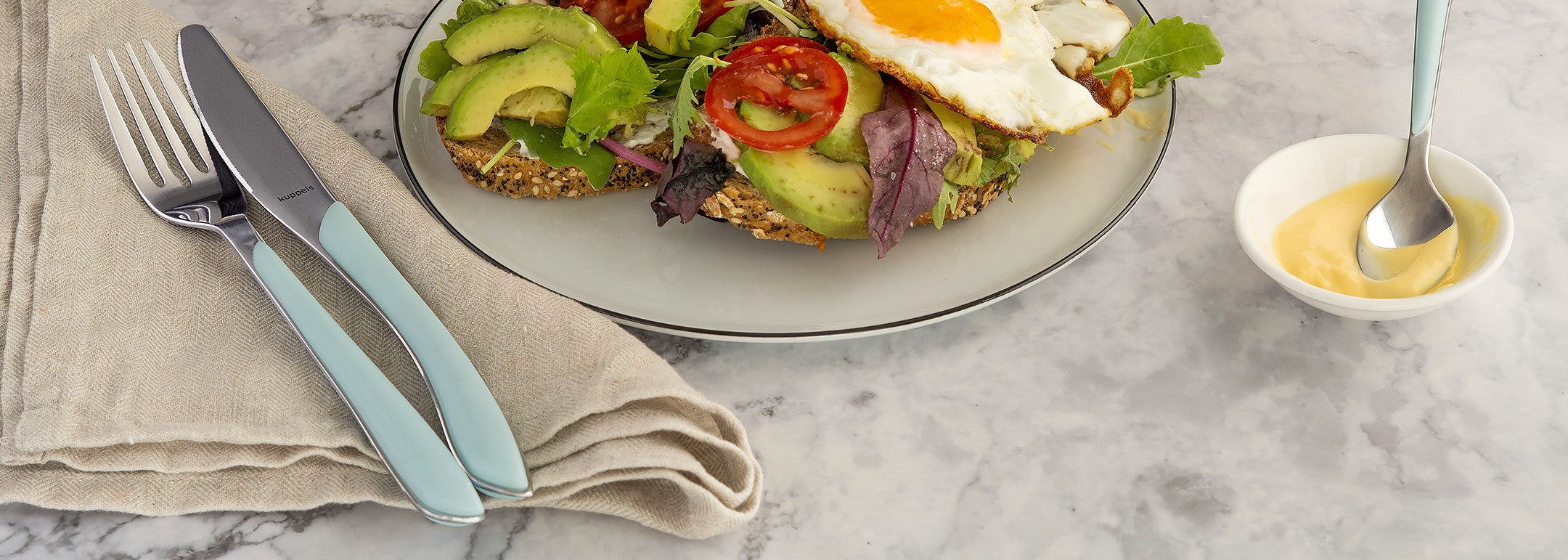You can find classic stainless steel cutlery, cheerful cutlery sets with colorful handles, or impressive cutlery pieces in gold, black, or champagne in the Kuppels brand shop.