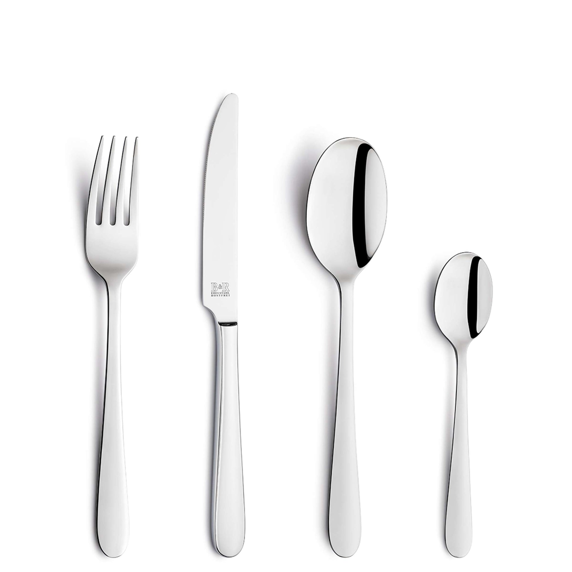 Simple yet elegant – the classic DALI cutlery set is ideal for everyday use. Its gently curved shape makes it comfortable to hold and adds a touch of quality to any table setting. Made from highly polished stainless steel, it's dishwasher safe, of course. For you, your guests, and your family.