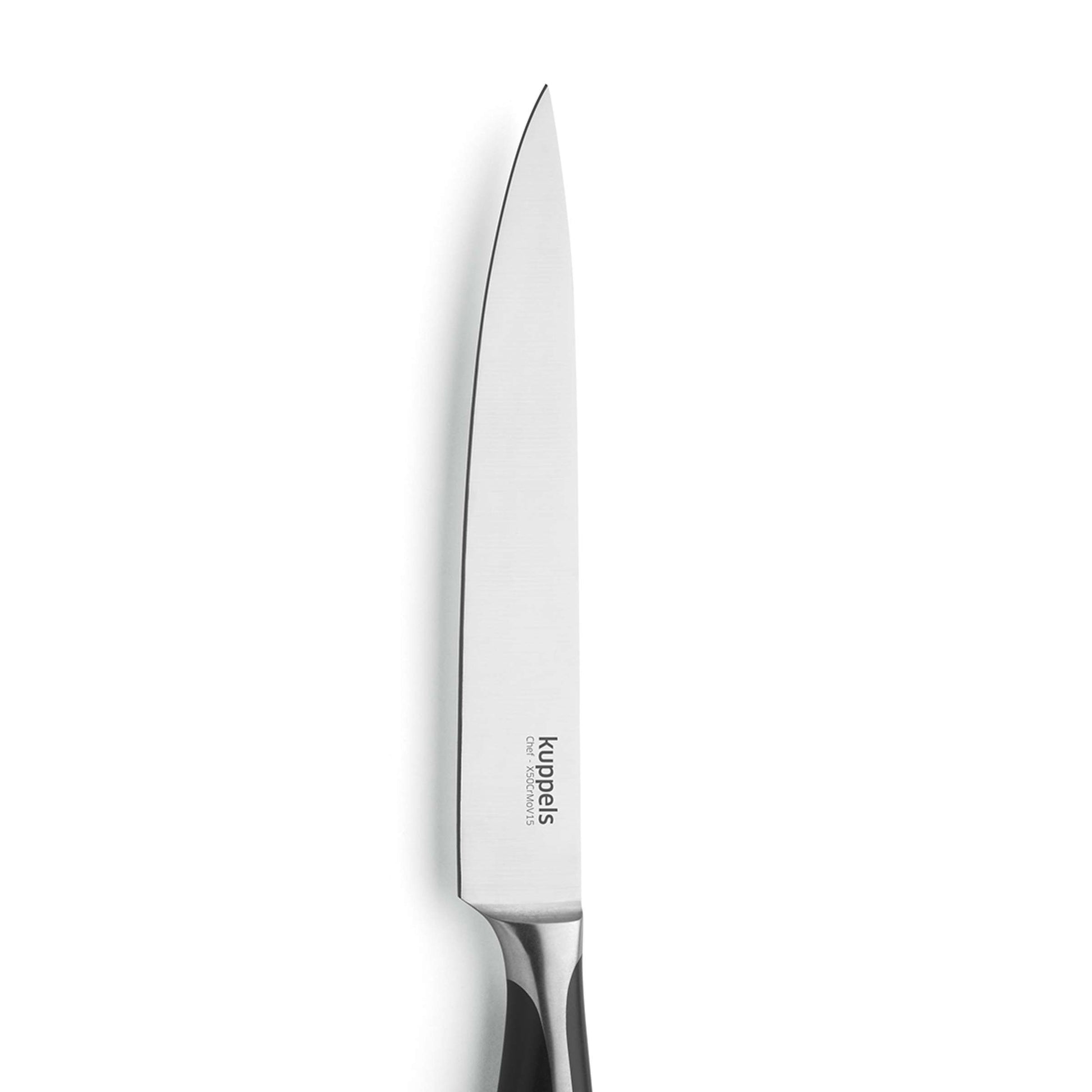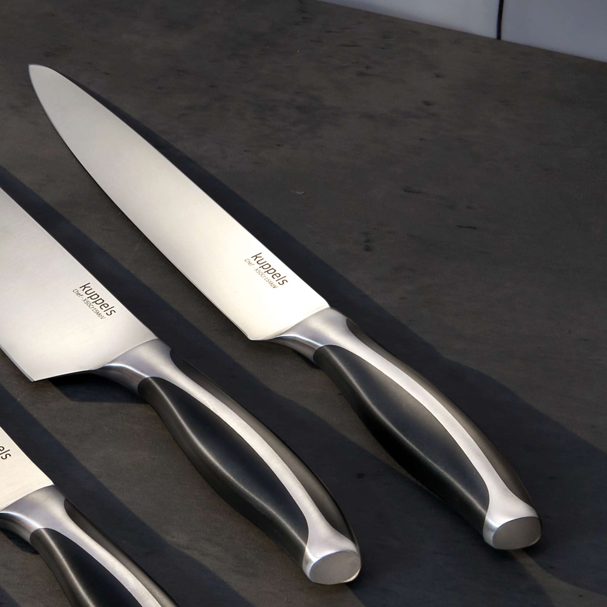 A professional kitchen knife with attention to detail – the excellent sharpness combined with the perfectly balanced handle design makes this knife particularly comfortable to hold. This allows all cutting tasks to be performed with ease and precision. The continuous tang from tip to end of the handle offers maximum control and balance. The high-quality blade steel gives the blade its excellent sharpness and edge retention. The elegant handle feels pleasantly heavy in the hand and ensures comfortable cutting and precise results. With the CHEF kitchen knife from Kuppels, you'll slice your ingredients like a pro.