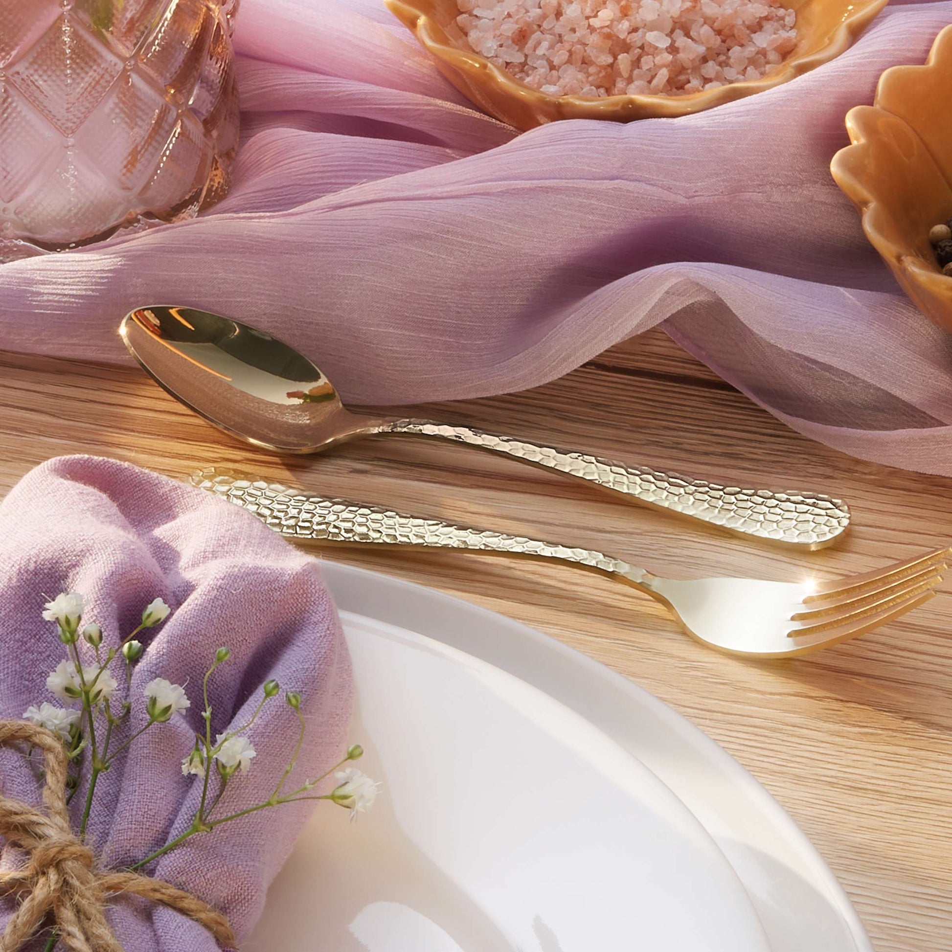 - Crystal Champagne cutlery set – elegant hammered look with a soft shimmer