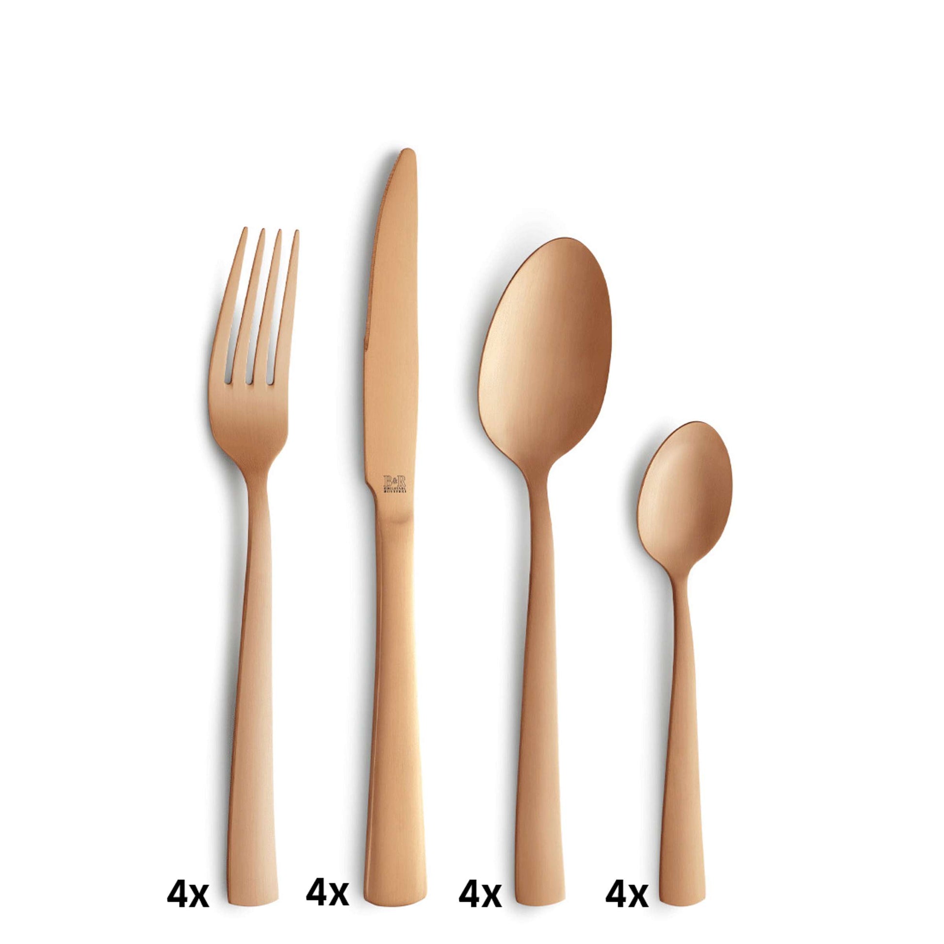 - Contents: 4 coffee spoons, 4 dinner forks, 4 dinner spoons, 4 dinner knives