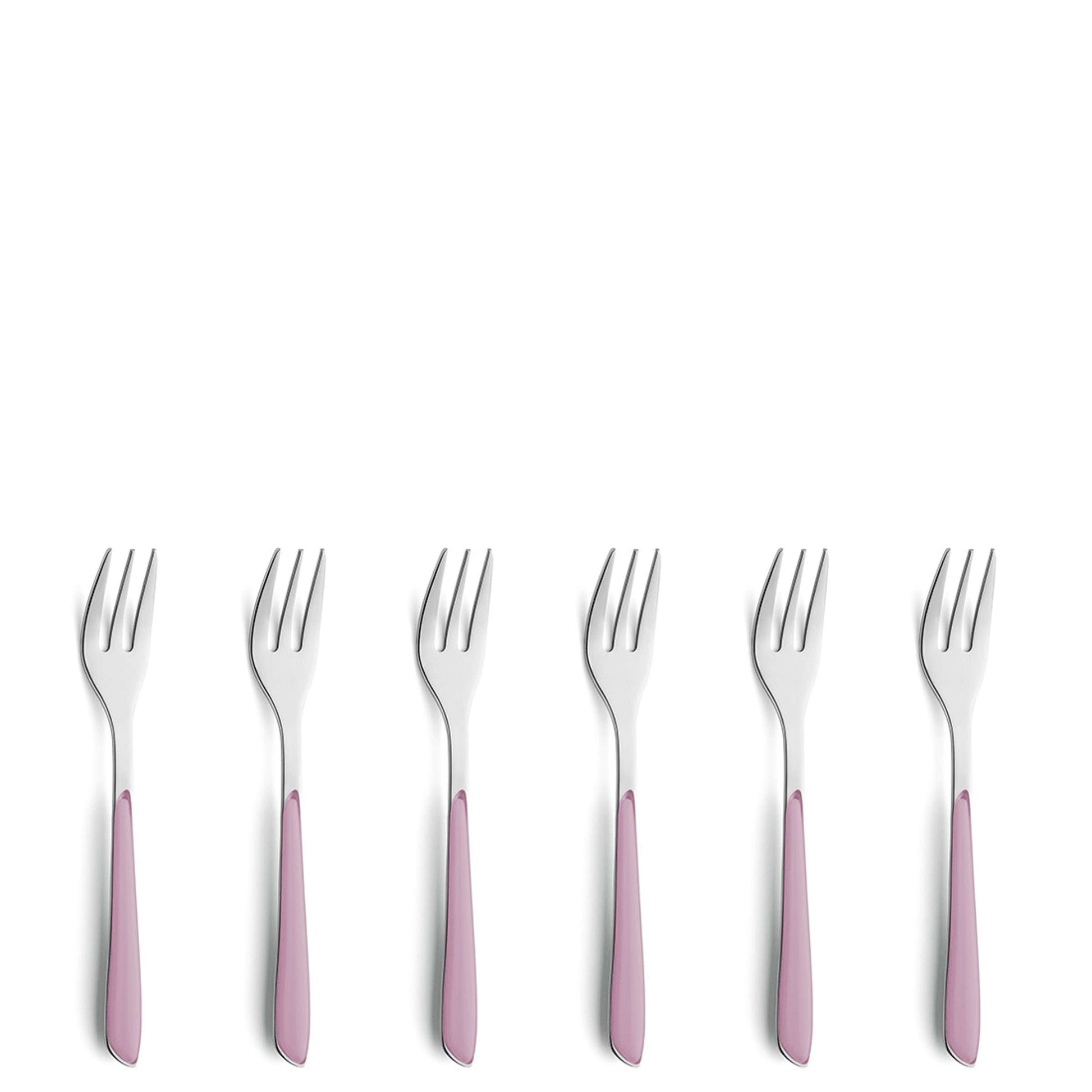 The PRISMA 6-piece cake fork set in antique rose adds a romantic touch to any coffee table. The stainless steel forks with transparent antique rose handles are comfortable to hold.