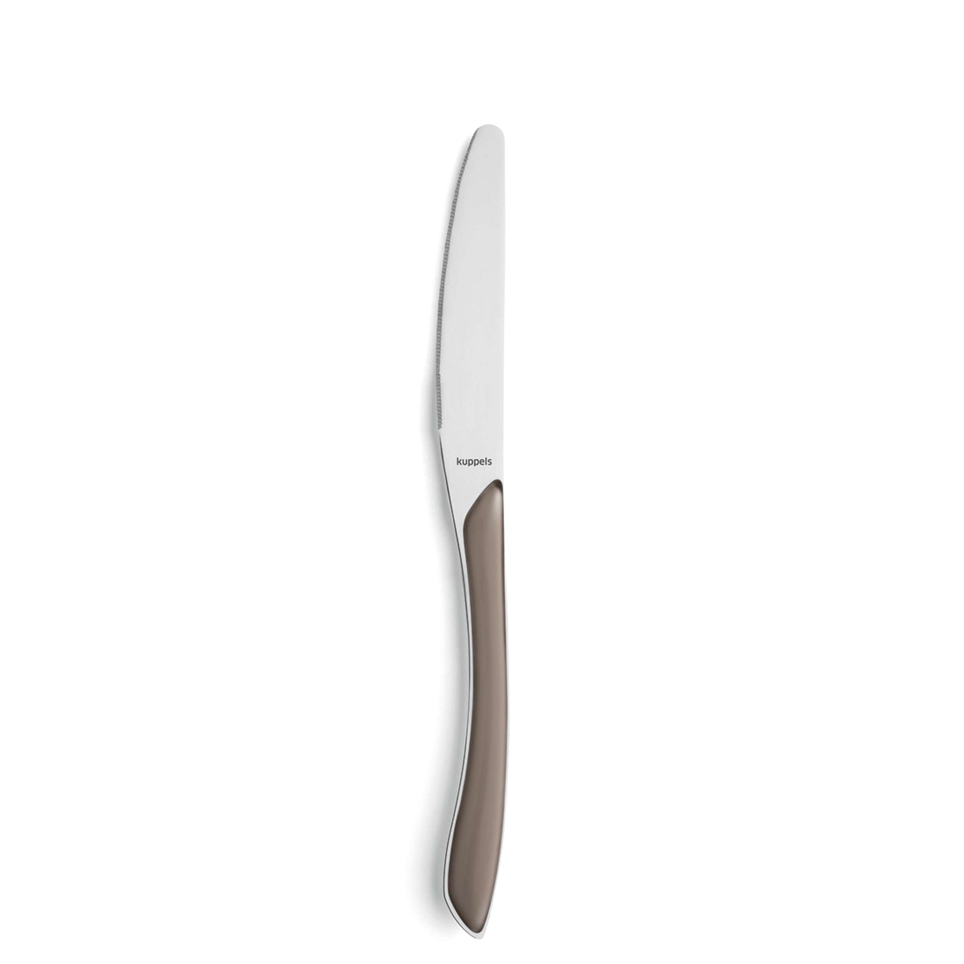The PRISMA Cocoa Full-Handle Dinner Knife from Kuppels adds warm color accents to your table and puts you in a good mood while eating. Crafted from stainless steel, it features a matte cocoa-colored plastic handle for a secure and comfortable grip.