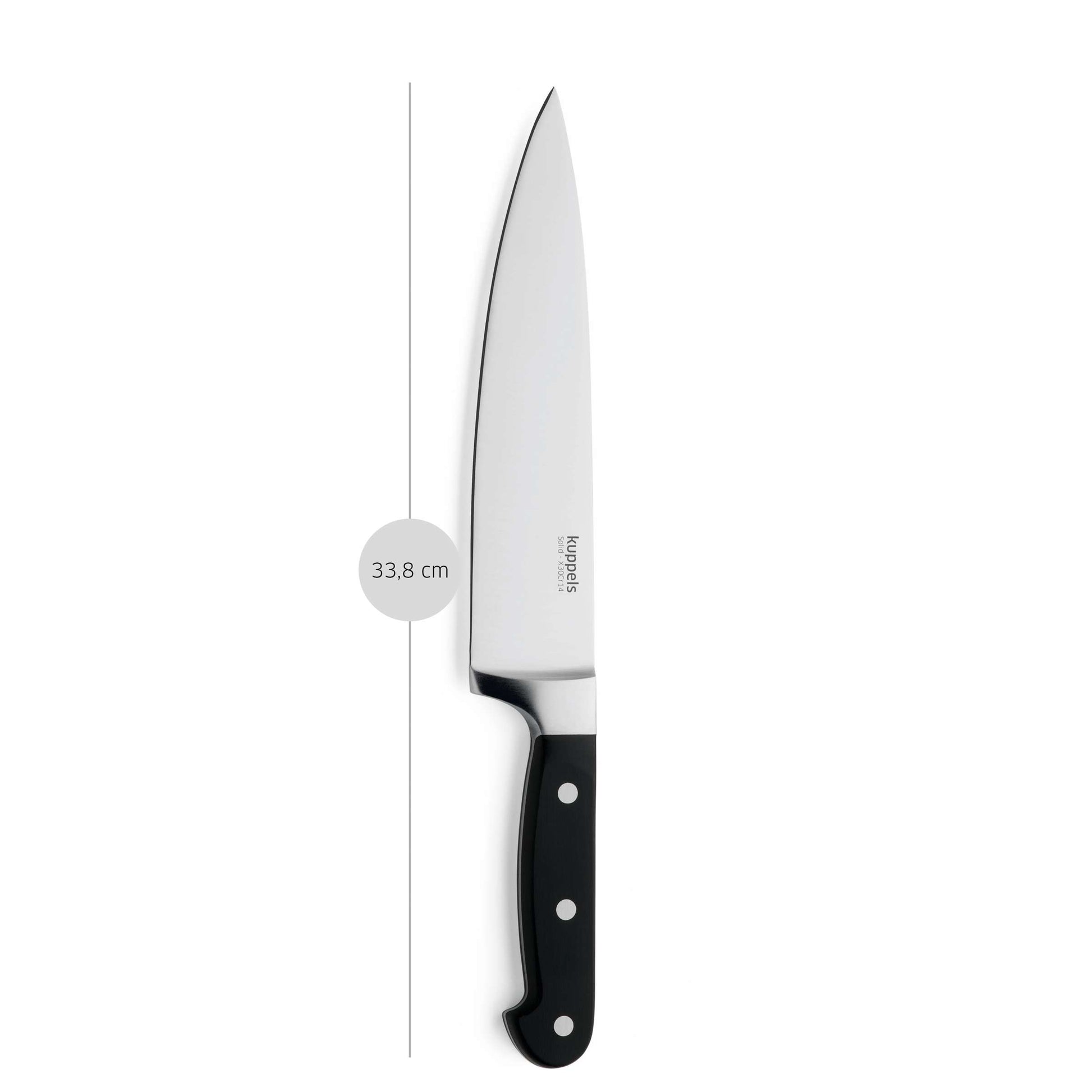 Effective, fatigue-free cutting thanks to the high-quality, sharp, and robust knife blade. The continuous tang from tip to end of the handle allows for maximum control and balance. The classic triple-riveted, ergonomic handle, made of robust plastic, and the chrome-vanadium blade steel (X30Cr14) ensure safe, comfortable cutting and a long edge retention.