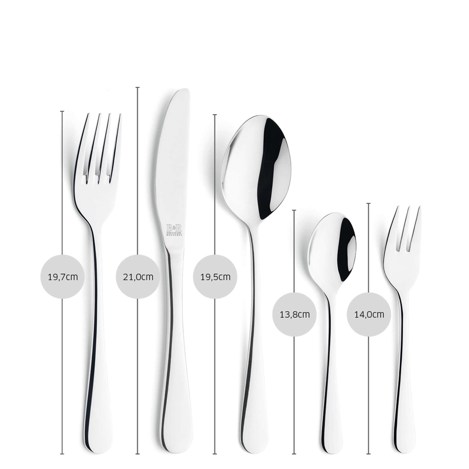 - Contents: 12 coffee spoons, 12 cake forks, 12 dinner forks, 12 dinner spoons, 12 dinner knives