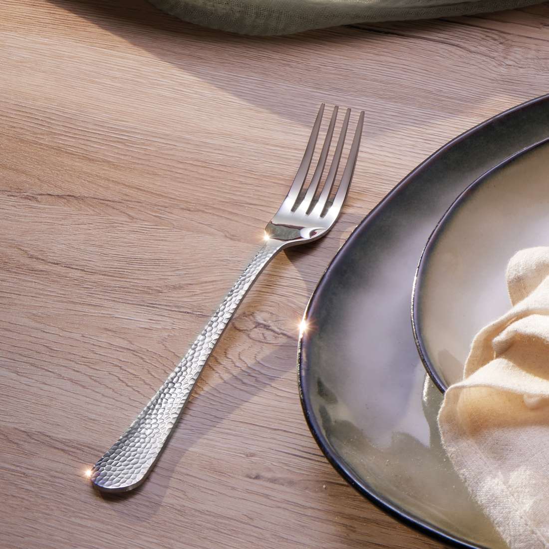 - Modern design cutlery – rounded handles & hammered surface with elegant light play