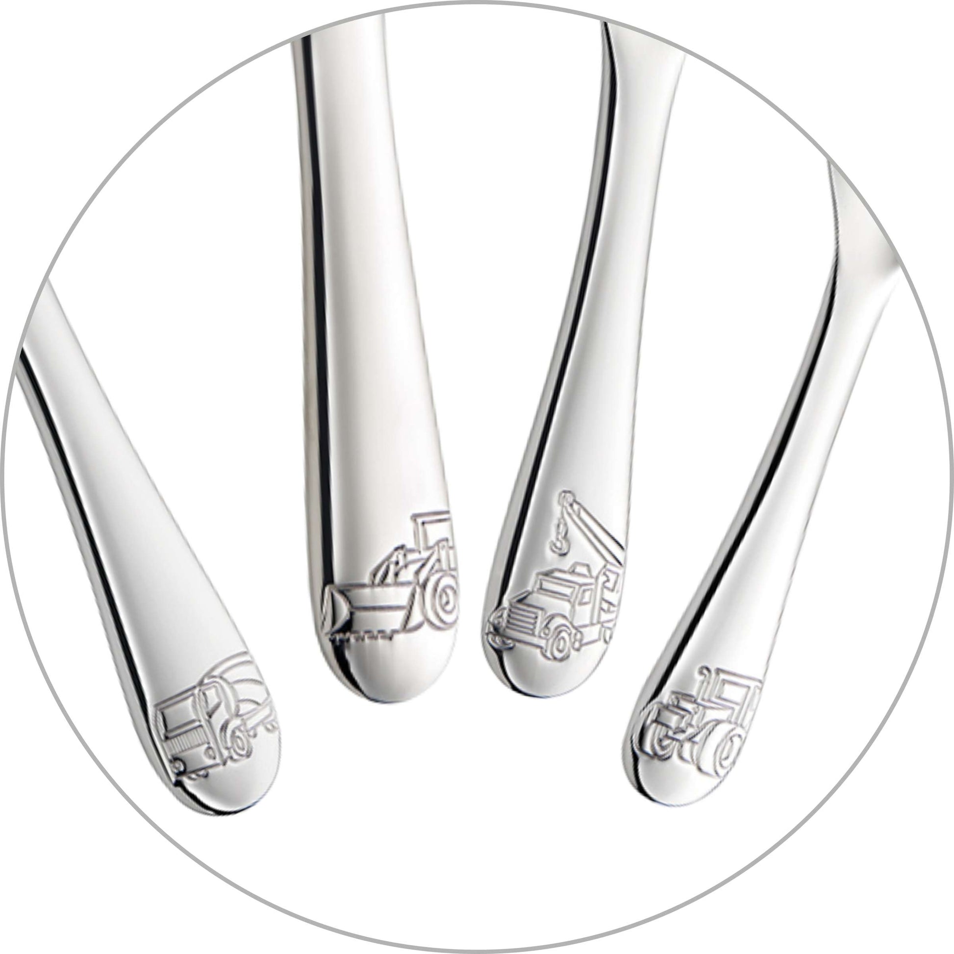 - niedliches Kinderbesteck mit Baustellenfahrzeugen