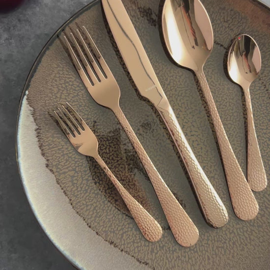 - Crystal Rosé Besteckset – elegante Hammerschlag-Optik mit sanftem Schimmer