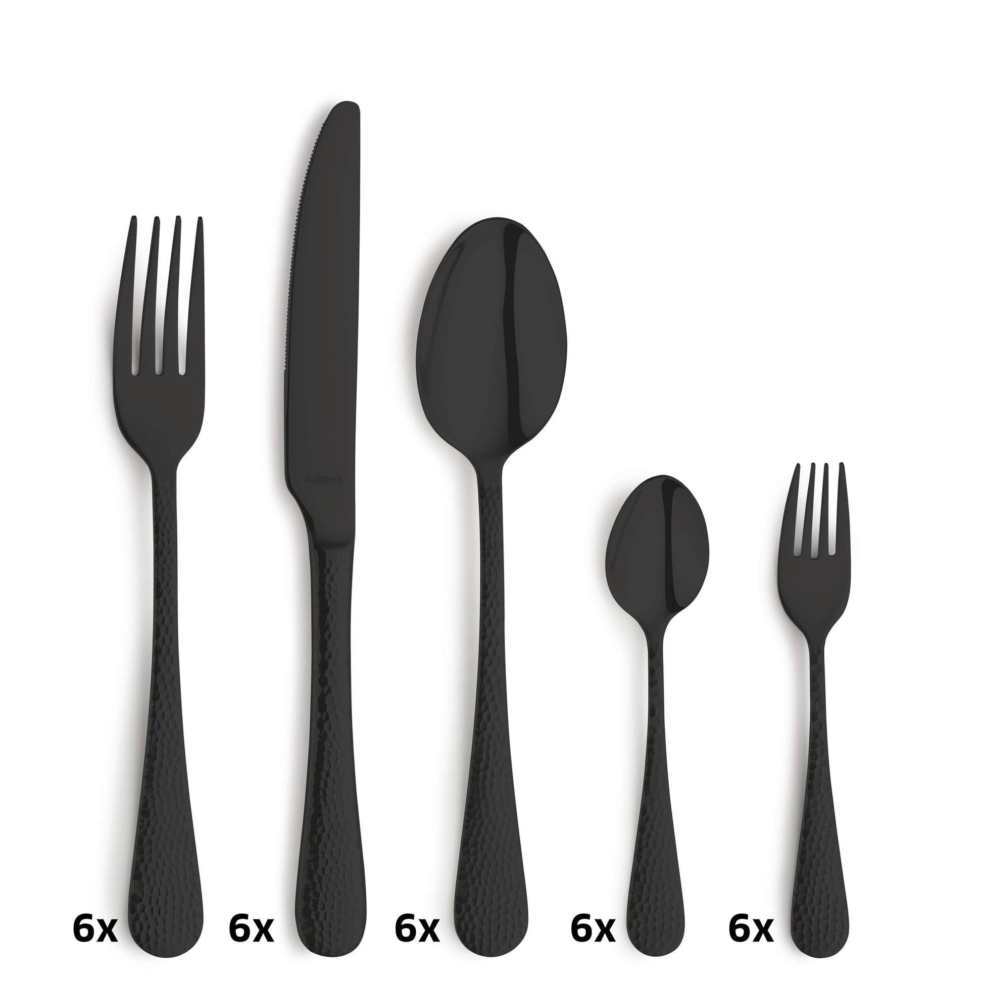 Crystal Schwarz – 30-teiliges Besteckset in tiefem Schwarz mit Hammerschlag-Optik