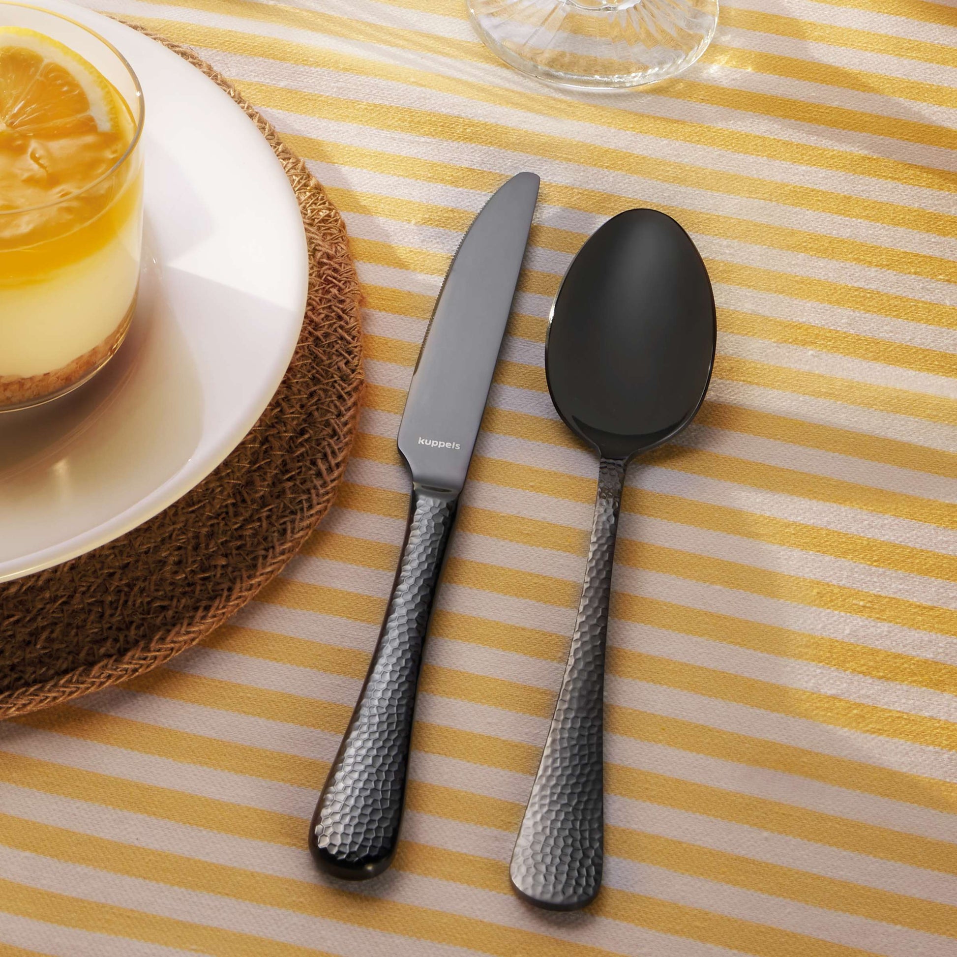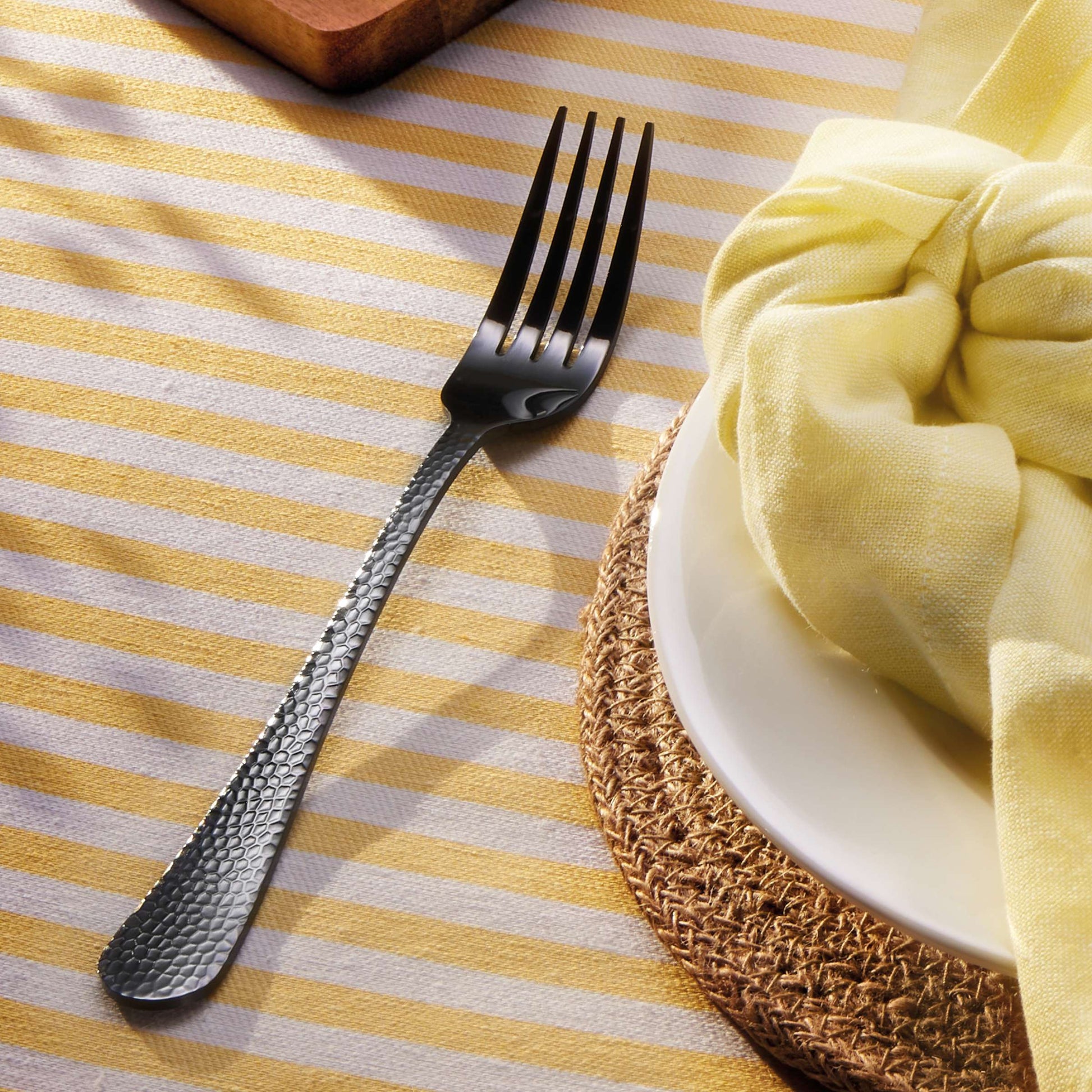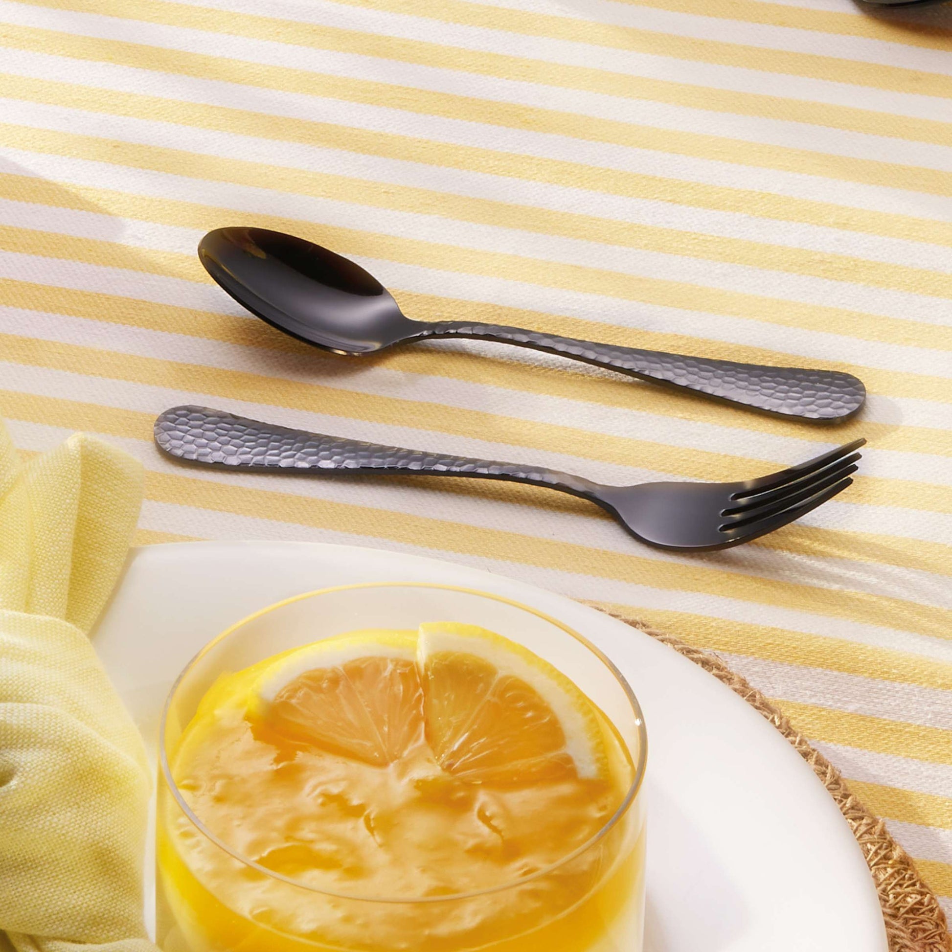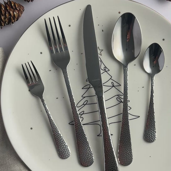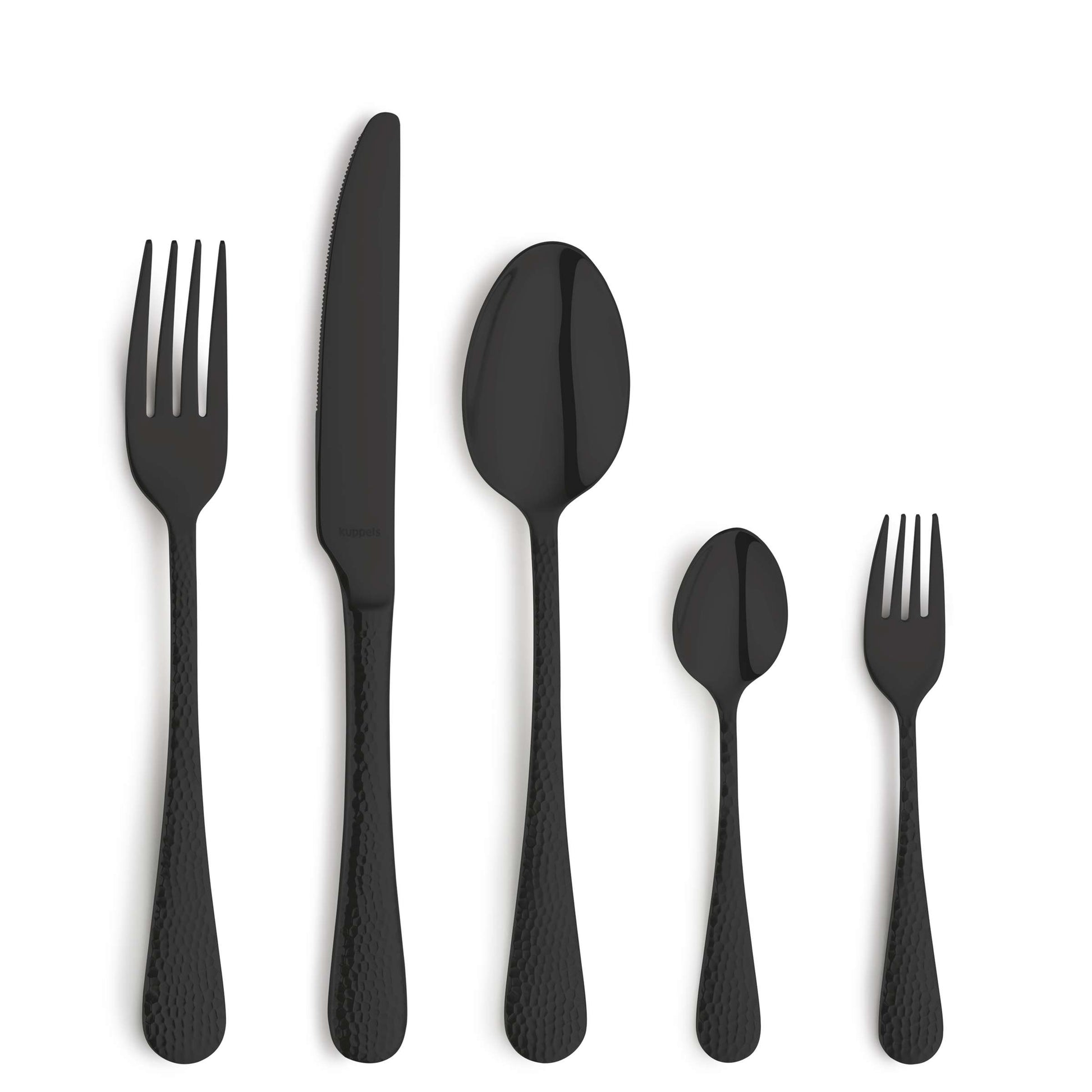 - Crystal Schwarz Besteckset – elegante Hammerschlag-Optik mit sanftem Schimmer