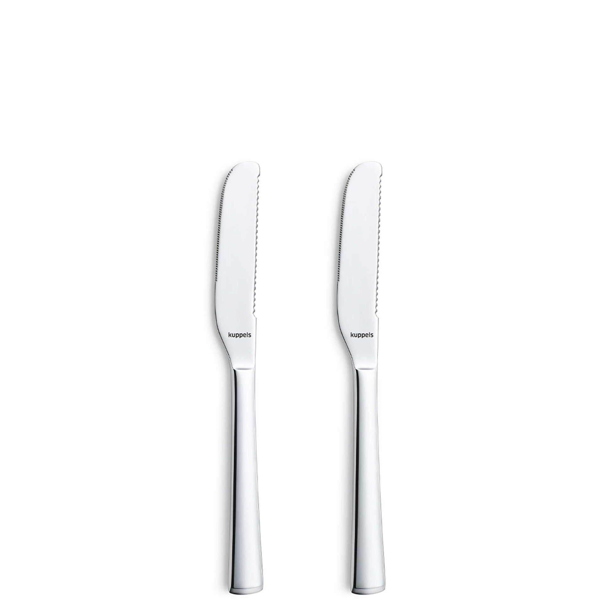 Das SELECTION Butterstreicher Set 2-teilig von Kuppels ist ein Must-have für jeden Frühstückstisch. Mit der gezackter Seite um Butterstücke problemlos abzukratzen und verstreichen. Die breite Klinge eignet sich perfekt für Frischkäse oder Marmelade.