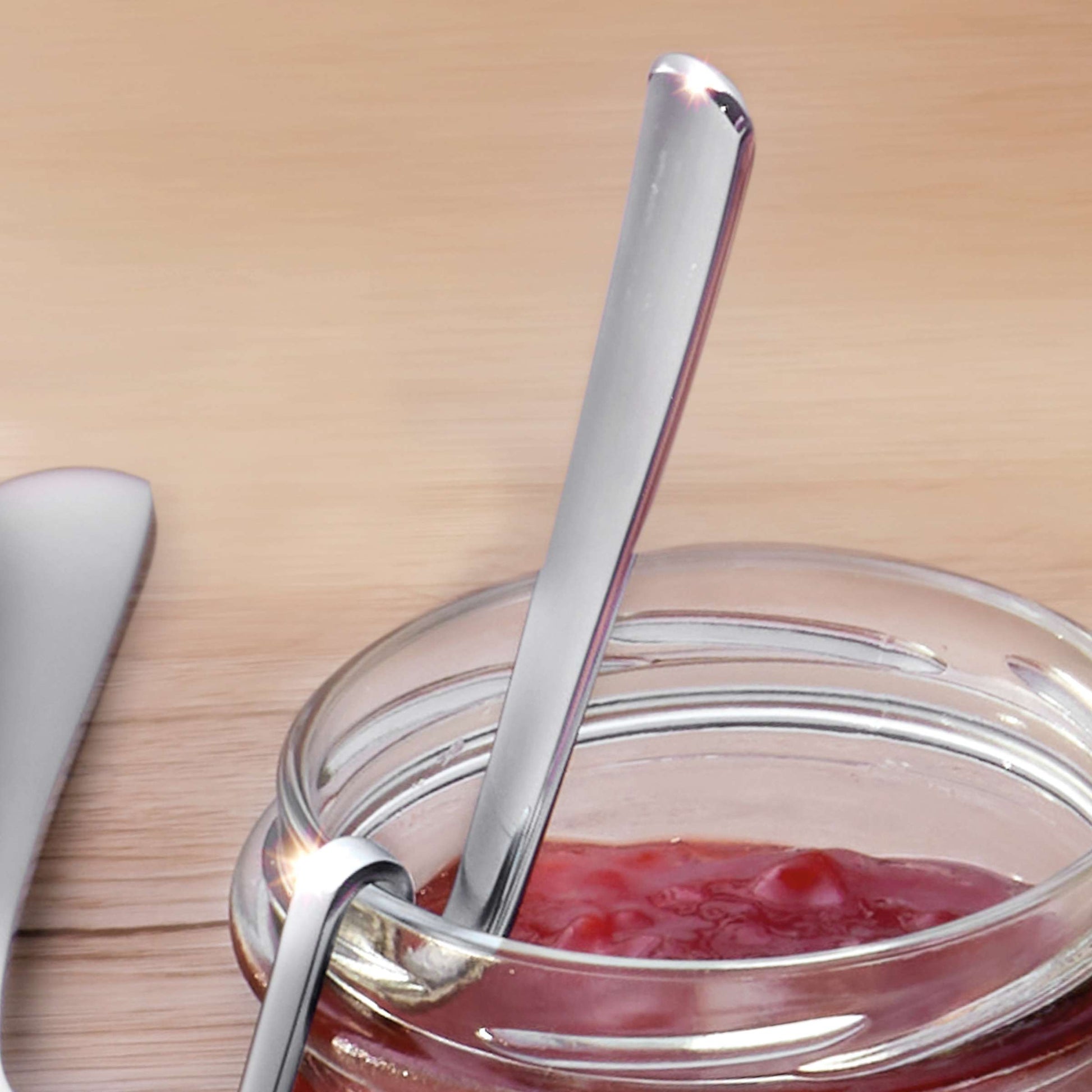 Der SELECTION Marmeladenlöffel von Kuppels ist die clevere Lösung für einen sauberen Frühstückstisch. Dank seines extra langen Griffs mit Einhängelasche bleibt der Löffel sauber am Glas hängen, ohne zu verschmieren.
